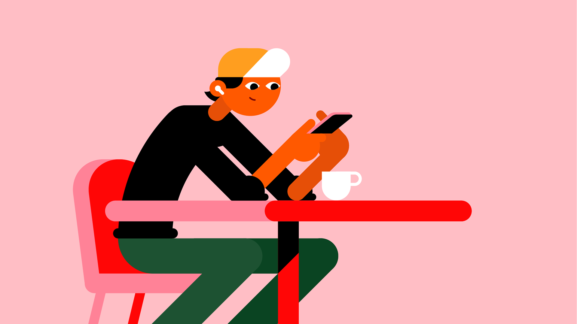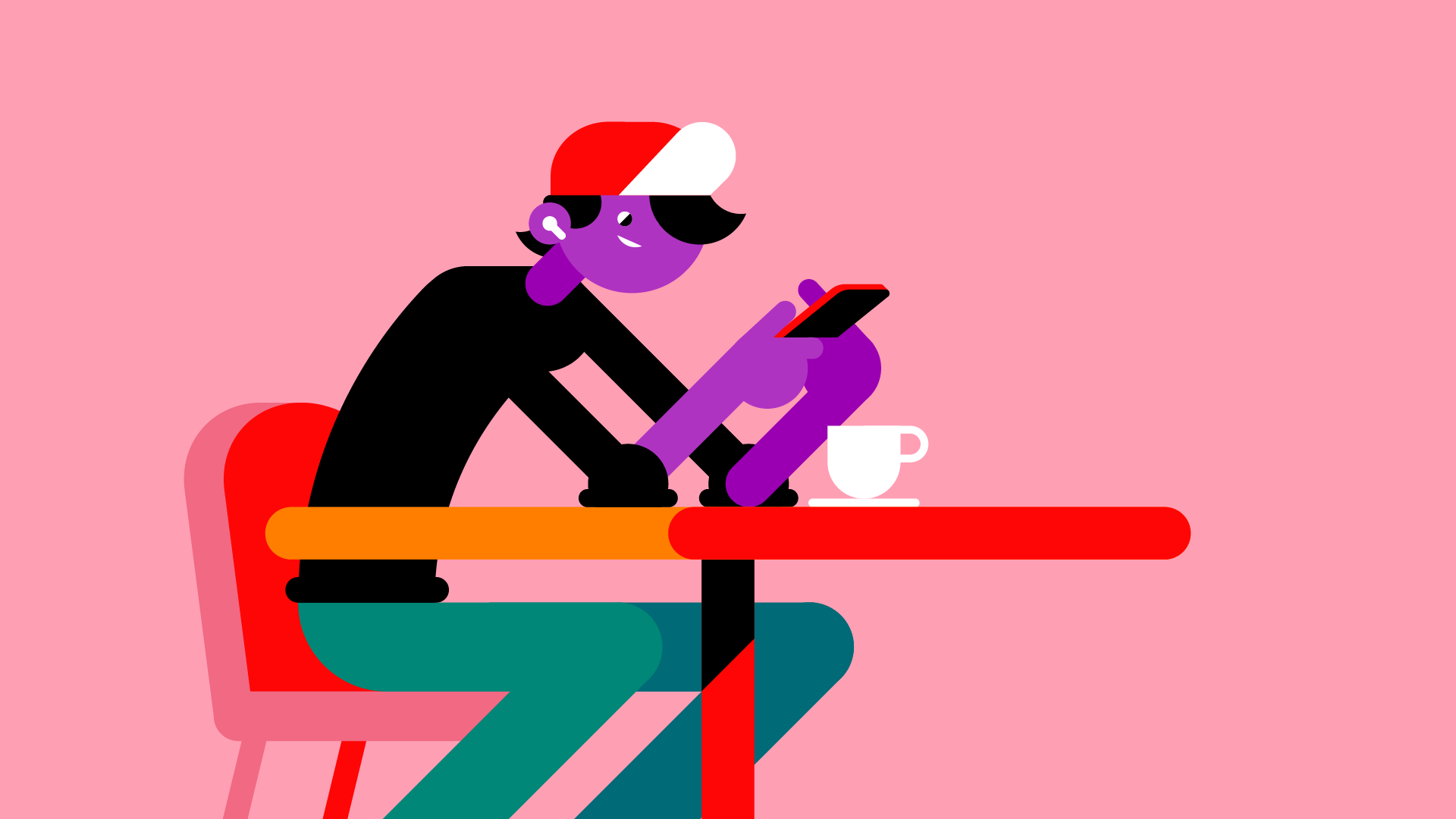 The minimal background imagery allows the audience to focus on the characters and their devices.